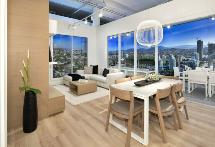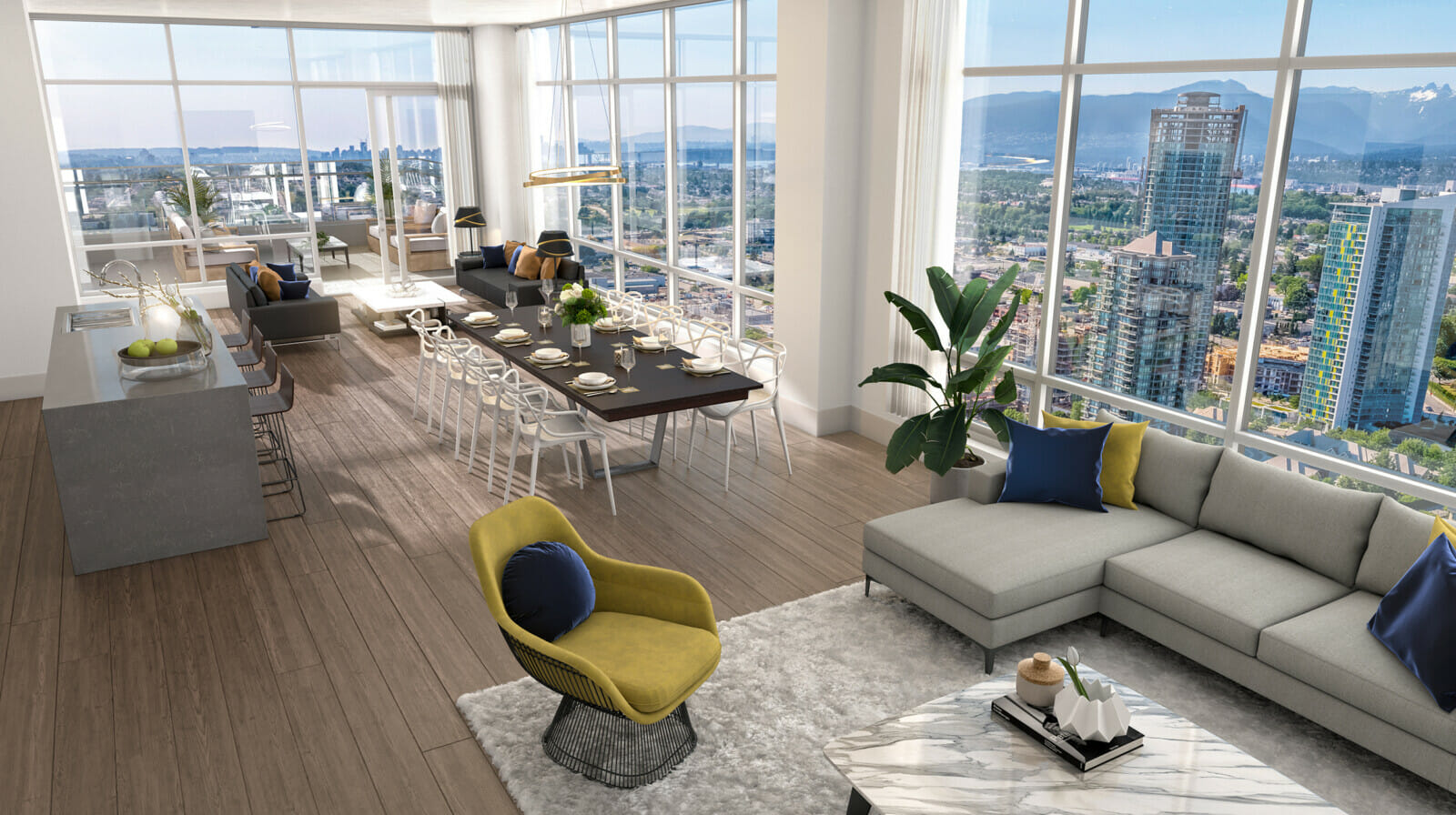 The most architecturally significant tower in Brentwood. Akimbo stands 40 storeys tall. Each home is positioned to offer sweeping views; from downtown Vancouver to the North Shore Mountains, and from Metrotown all the way to Mount Baker. Steps from two SkyTrain stations at Gilmore and Brentwood Mall, with easy access to Highway 1 and the Central Valley Greenway walk and bike path just outside your door. Enjoy the convenient location of being moments away from the newly renovated Brentwood Mall—Burnaby’s renewed luxury shopping destination.
